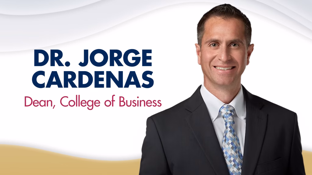 As Dean of the College of Business, Dr. Jorge Cardenas brings a global, practitioner-informed perspective shaped by both his professional background and his upbringing along the U.S.–Mexico border.